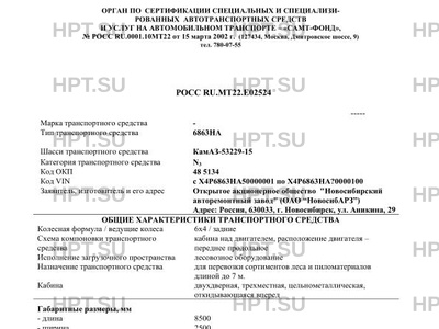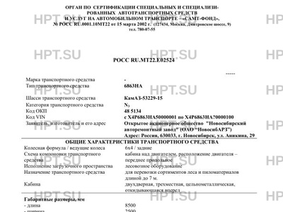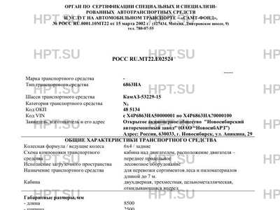| Коммерческое наименование | Автомобиль-сортиментовоз 6863НА на шасси КамАЗ-53229-15 |