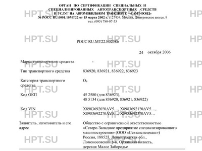 Коммерческое наименование Прицепы 836920, 836921, 836922, 836923