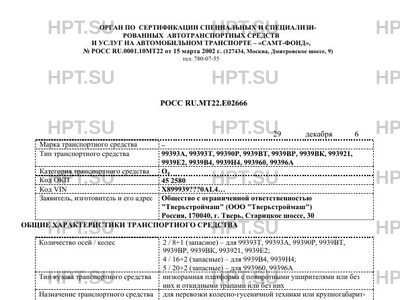 | Коммерческое наименование | Полуприцепы-тяжеловозы: 993960, 99396А, 99393Т, 99393А, 9939ОР, 9939ВТ, 9939ВР,… |