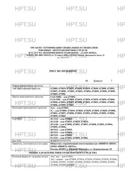 | Коммерческое наименование | Автомобили 473809, 473819, 473829, 473839, 473849, 473859, 473890, 473891, 473892, 473893, 473894, 473895, 473896, 473897, 473898, 473899, 473869, 473901, 473906, 473936, 473926, 473946, 473956, 473966, 473888, 473889 на шасси ГАЗ-3309 (для 473809, 473819, 473829, 473839, 473849, 473859, 473890, 473891, 473892, 473893, 473894, 473895, 473896, 473897, 473898, 473899, 473869, 473888, 473889), ГАЗ-33081 (для 473901, 473906, 473936, 473926, 473946, 473956, 473966) |
