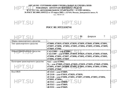 | Тип ТС | Автомобили 473809, 473819, 473829, 473839, 473849, 473859, 473890, 473891, 473892, 473893, 473894, 473895, 473896, 473897, 473898, 473899, 473869, 473901, 473906, 473936, 473926, 473946, 473956, 473966, 473888, 473889 на шасси ГАЗ-3309 (для 473809, 473819, 473829, 473839, 473849, 473859, 473890, 473891, 473892, 473893, 473894, 473895, 473896, 473897, 473898, 473899, 473869, 473888, 473889), ГАЗ-33081 (для 473901, 473906, 473936, 473926, 473946, 473956, 473966) |