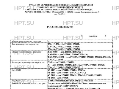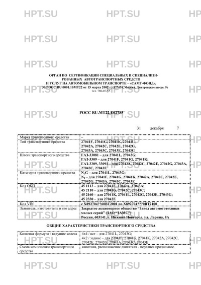 | Категория ТС | N2G - для 27041L, 27043G; N2 - для 27041F, 27041G, 27041K, 27042A, 27042C, 2704… |