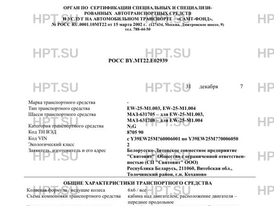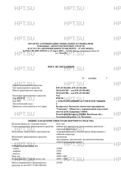 | Тип ТС | Экскаватор EW-25-M1.003, EW-25-M1.004 на шасси МАЗ-631705 (для EW-25-M1.003), МАЗ-631708 (для EW-25-M1.004) |
