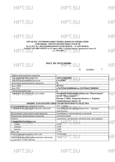 | Коммерческое наименование | Автоподъемник АПТ-17М (3307) 294612 на шасси ГАЗ-3307 |