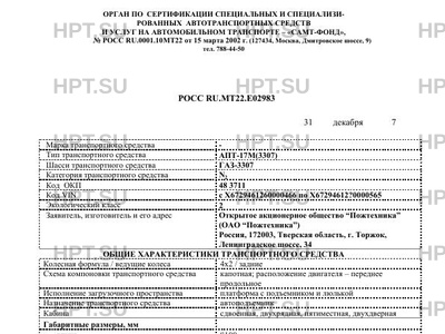 | Тип ТС | Автоподъемник АПТ-17М (3307) 294612 на шасси ГАЗ-3307 |