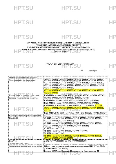 | Базовое ТС / Шасси | и ГАЗ-33104 - для 473700, 473701, 473702, 473703, 473704, 473707, 473708, 47370… |