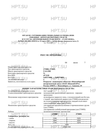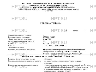 | Тип ТС | Автомобили-фургоны 273000, 27300Х на шасси ГАЗ-3302 |