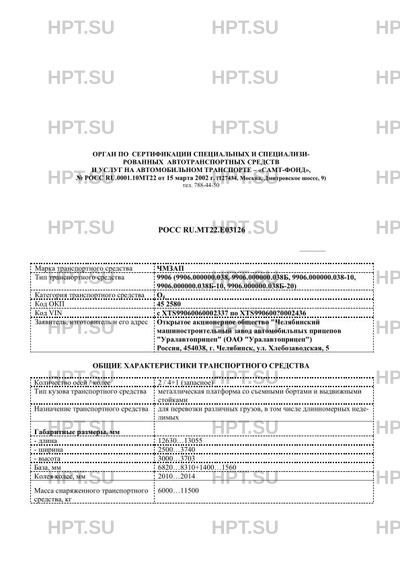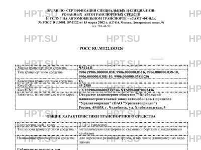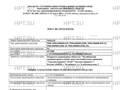 | Коммерческое наименование | Полуприцеп ЧМЗАП-9906 (9906.000000.038, 9906.000000.038Б, 9906.000000.038-10, 9… |