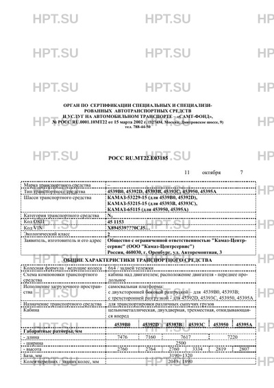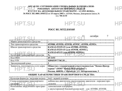 | Тип ТС | 4539В0, 45392D, 45393В, 45393С, 453950, 45395А на шасси КАМАЗ-53229-15 (для 4539В0, 45392D), КАМАЗ-53215-15 (для 45393В, 45393С), КАМАЗ-65115 (для 453950, 45395А) |