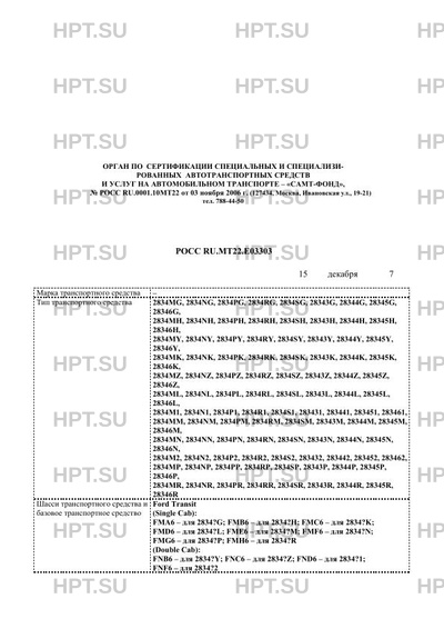 | Базовое ТС / Шасси | и Ford Transit (Single Cab): FMA6 - для 2834?G; FMB6 - для 2834?H; FMC6 - для 2… |