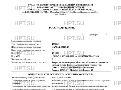 | Базовое ТС / Шасси | КАМАЗ-53215-15 |