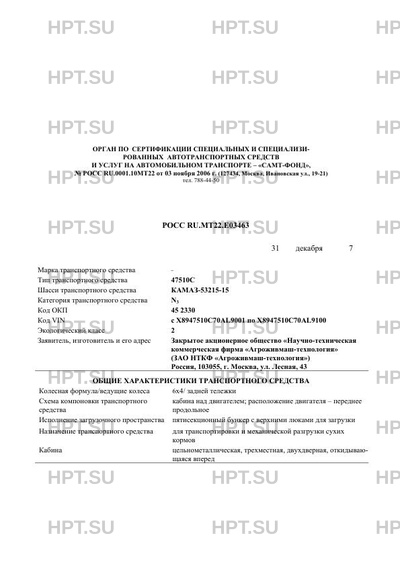 | Предприятие-изготовитель | Закрытое акционерное общество "Научно-техническая коммерческая фирма "Агроживмаш-технология" (ЗАО "Агроживмаш-технология". Россия, 103055, г. Москва, Лесная, 43 |