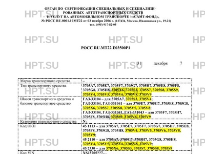 | Тип ТС | 3705А7, 3705E7, 3705F7, 3705G7, 3705H7, 3705E8, 3705F8, 3705G8, 3705H8, 3705X6, 3705S3, 3705S7, 3705S8, 3705S9,3705V4, 3705V5, 3705V6, 3705V8, 3705V9 |