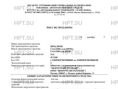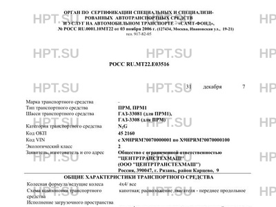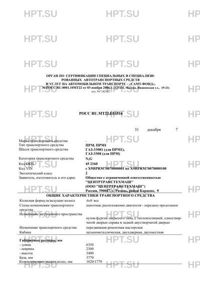 Базовое ТС / Шасси ГАЗ-33081 (для ПРМ1), ГАЗ-3308 (для ПРМ)