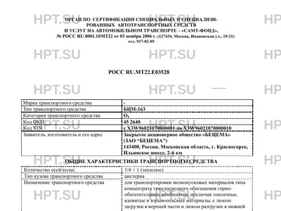 | Тип ТС | БЦМ-163 |