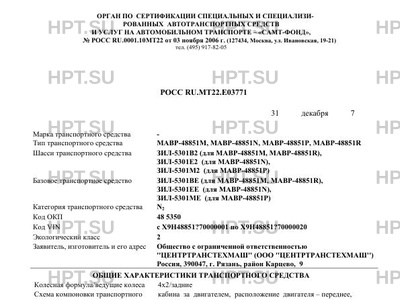 | Тип ТС | МАВР-48851М, МАВР-48851N, МАВР-48851P, МАВР-48851R |