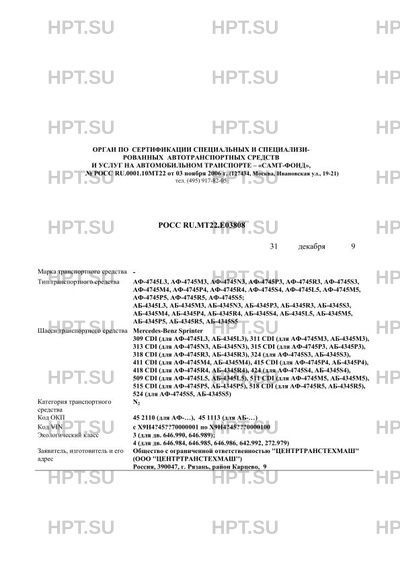 | Предприятие-изготовитель | Общество с ограниченной ответственностью "ЦЕНТРТРАНСТЕХМАШ" (ООО "ЦЕНТРТРАНСТЕХМАШ"). Россия, 390047, г. Рязань, район Карцево, 9 |