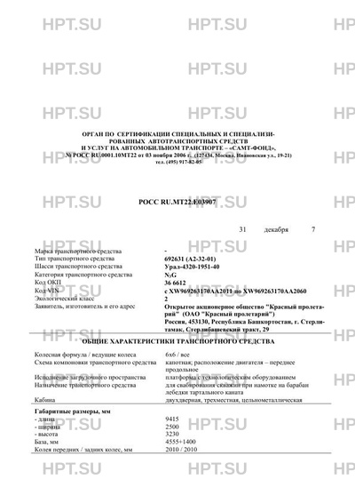 | Тип ТС | 692631 (А2-32-01) на шасси Урал-4320-1951-40 |
