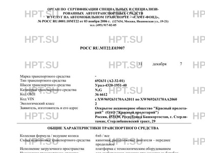 | Коммерческое наименование | 692631 (А2-32-01) на шасси Урал-4320-1951-40 |