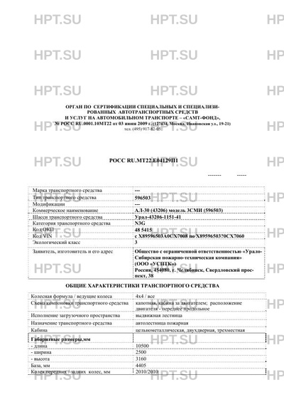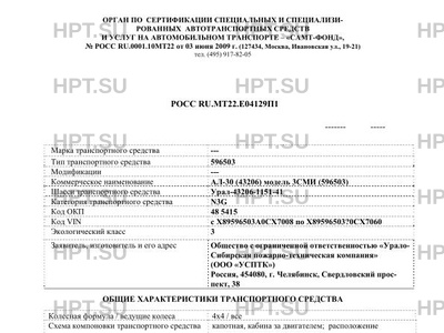 | Тип ТС | 596503 на шасси Урал-43206-1151-41 |