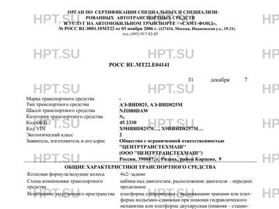 | Код VIN | Х9НBНD82570…, Х9НBНD8257М… |
