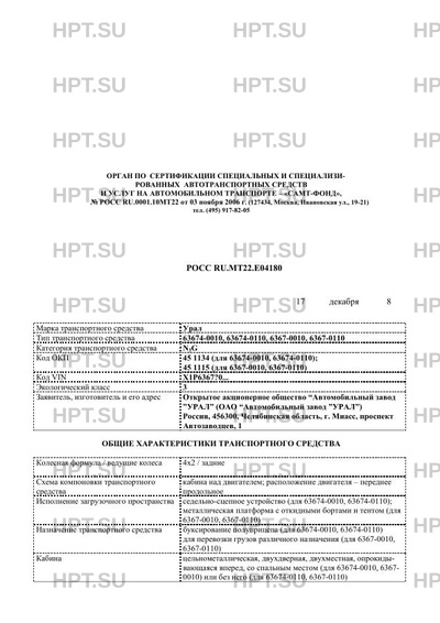 | Тип ТС | 63674-0010, 63674-0110, 6367-0010, 6367-0110 |