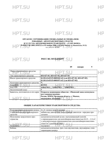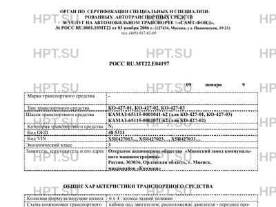 | Коммерческое наименование | КО-427-01, КО-427-02, КО-427-03 на шасси КАМАЗ-65115-0001041-62 (для КО-427-01,… |