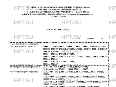 | Тип ТС | 278803, 278802, 278811, 278810, 278804, 278805, 278806, 278807, 278808, 278809, 278812, 278815, 278816, 278817, 278818, 278819, 278820, 278800, 278821, 278801, 278822, 278823, 278824, 278825, 278826, 278827, 278814, 278813, 278828, 278829, 278830, 278831, 278832, 278833, 278834, 278835, 278836, 278837 на шасси ГАЗ-3302 – для 278803, 278808, 278820, 278824; ГАЗ-33023 – для 278802, 278809, 278821, 278825; ГАЗ-33027 – для 278804, 278806, 278816, 278818, 278826, 278828, 278834; ГАЗ-330273 – для 278805, 278807, 278817, 278819, 278822, 278823, 278827, 278829, 278835; ГАЗ-3302, ГАЗ-330202 – для 278811, 278812, 278800, 278814, 278830, 278832, 278836, 278837; ГАЗ-33023, ГАЗ-330232 – для 278810, 278815, 278801, 278813, 278831, 278833 |