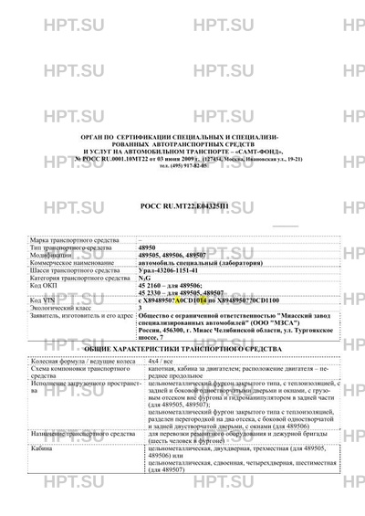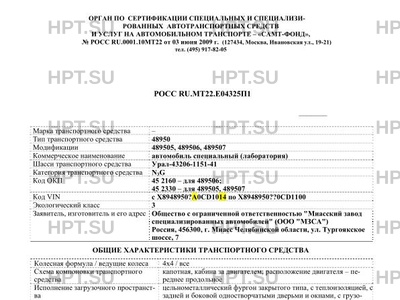 | Коммерческое наименование | автомобиль специальный (лаборатория) |