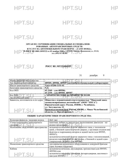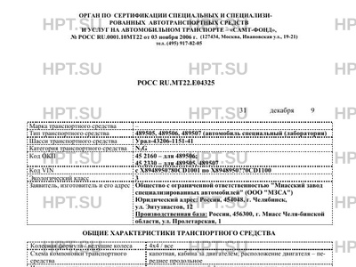 | Коммерческое наименование | 489505, 489506, 489507 (автомобиль специальный (лаборатория) на шасси Урал-4320… |
