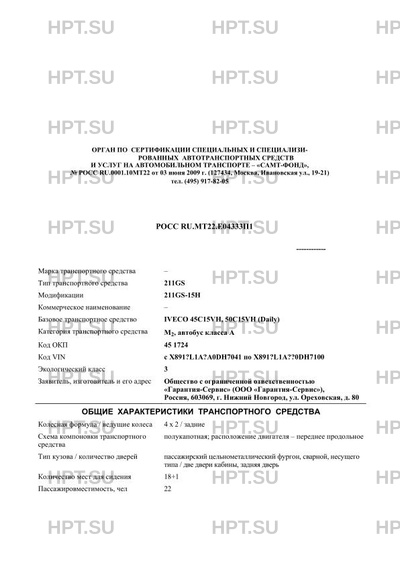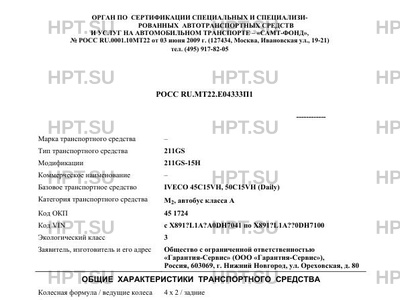 | Коммерческое наименование | 211GS-15Н на шасси Ivесo Daily Van |