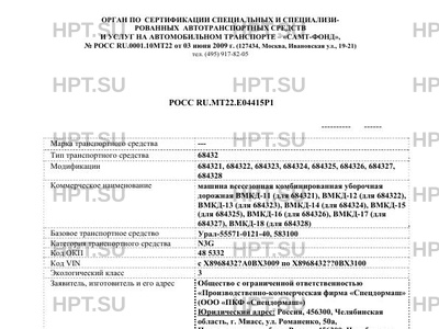 | Коммерческое наименование | машина всесезонная комбинированная уборочная дорожная ВМКД-11 (для 684321), ВМК… |