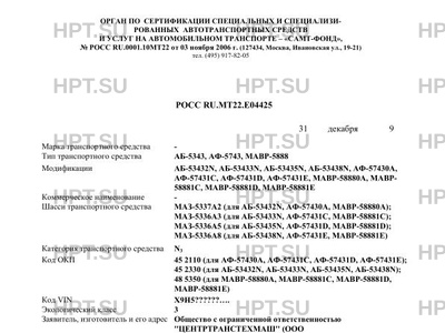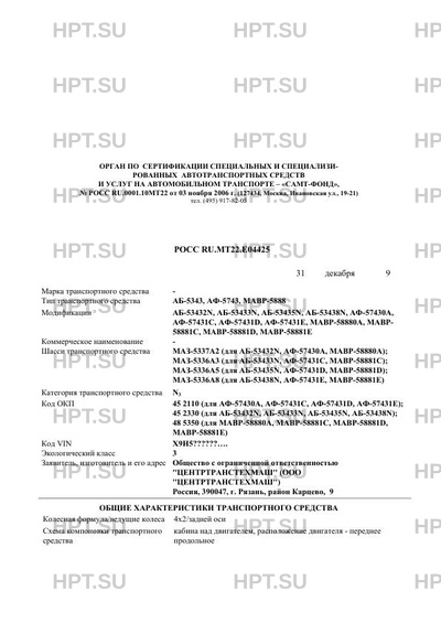 | Тип ТС | АБ-53432F, АБ-53433M, АБ-53435M, АБ-53438M; АФ-57430А, АФ-57431С, АФ-57431D, АФ-57431E; МАВР-58880А, МАВР-58881С, МАВР-58881D, МАВР-58881E на шасси МАЗ-5337А2, МАЗ-5336А3, МАЗ-5336А5, МАЗ-5336А8 |