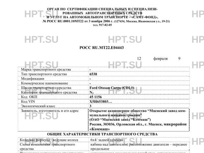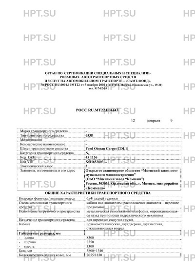 | Коммерческое наименование | 6538 на шасси FORD Otosan Cargo (CDL1) |
