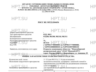 | Код VIN | c Х4Р9813??80000001 по Х4Р9813???0000080, c Х4Р93220080000101 по Х4Р932200?0000… |