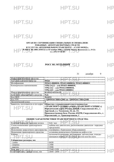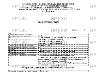 | Тип ТС | 59341 Молификации 593411-0000010, 593412-0000010, 593412-0000011 |