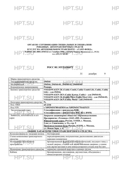 Модификации 294544, 294544-01, 294544-02, 294544-03