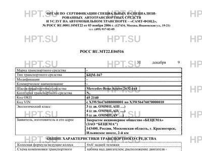 | Коммерческое наименование | БЦМ-167 на шасси Mersedes |