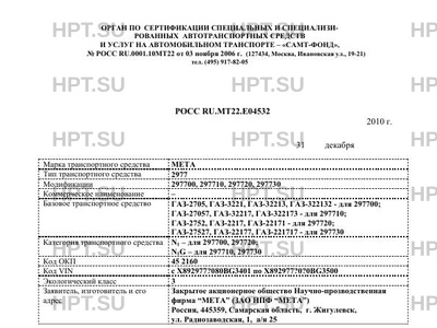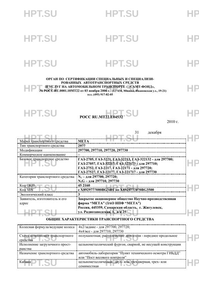 Тип ТС 297700, 297710, 297720, 297730 на шасси ГАЗ-2705, ГАЗ-3221, ГАЗ-32213, ГАЗ-322132 - для 297700; ГАЗ-27057, ГАЗ-32217, ГАЗ-322173 - для 297710; ГАЗ-2752, ГАЗ-2217, ГАЗ-22171 - для 297720; ГАЗ-27527, ГАЗ-22177, ГАЗ-221717 - для 297730
