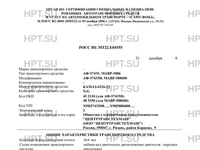 | Код VIN | Х9Н57435D8..., Х9Н5886008… |