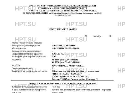 | Тип ТС | АФ-57435D, МАВР-588600 на шасси КАМАЗ-4326-15 |