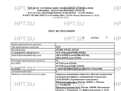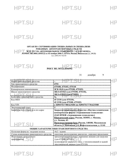 Исполнение загрузочного пространства трехсекционный бункер с верхними люками для загрузки (для 475100, 475103), кузов-фургон закрытого типа, с теплоизоляцией и задней двустворчатой дверью (для 475110) 2