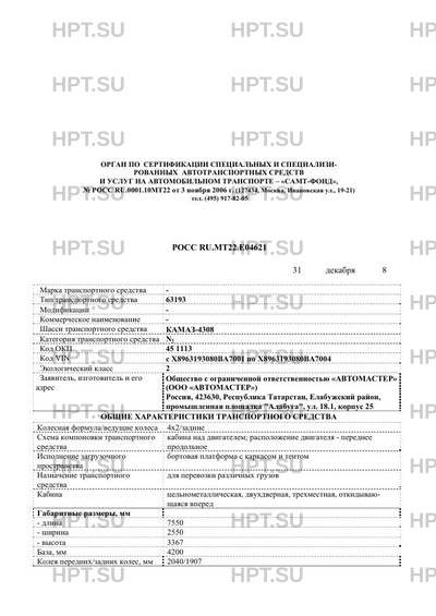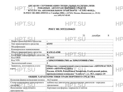 | Коммерческое наименование | 63193 на шасси КАМАЗ-4308 |