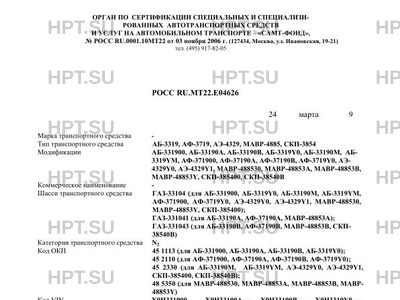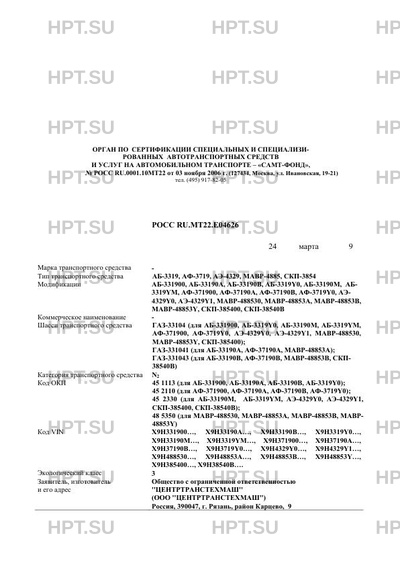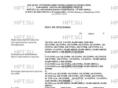 | Базовое ТС / Шасси | ГАЗ-33104 (для АБ-331900, АБ-3319Y0, АБ-33190М, АБ-3319YМ, АФ-371900, АФ-3719Y0… |