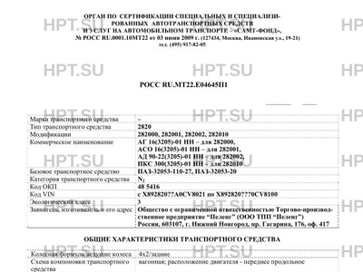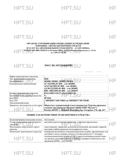 | Тип ТС | 282000, 282001, 282002, 282010 на шасси ПАЗ-32053-110-27, ПАЗ-32053-20 |