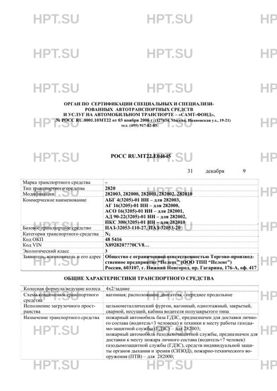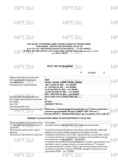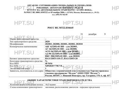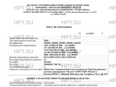 | Тип ТС | 282003 (АБГ 4(3205)-01 НН), 282000 (АГ 16(3205)-01 НН), 282001 (АСО 16(3205)-01 НН), 282002 (АД 90-22(3205)-01 НН), 292010 (ПКС 300(3205)-01 НН) на шасси ПАЗ-32053-110-27, ПАЗ-32053-20 |