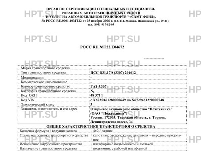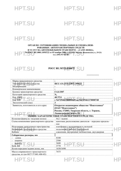 | Тип ТС | ПСС-131.17Э (3307) 294612 |