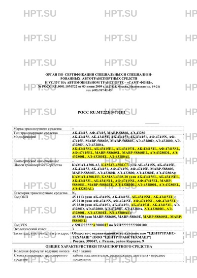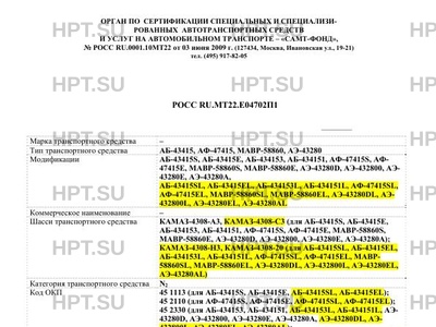 | Тип ТС | АБ-43415, АФ-47415, МАВР-58860, АЭ-43280 |