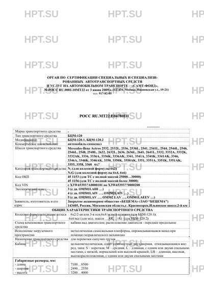 | Тип ТС | БЦМ-120 |