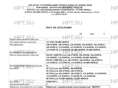 | Базовое ТС / Шасси | ISUZU NQR75P (для АФ-4749S0, АБ-4349S0, АБ-4349SN, АЭ-4349SE, АЭ-4349SМ, АЭ-434… |